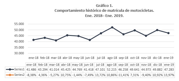 El mes de enero arrojó un total de 47.283 matrículas registradas en el país, lo cual indica que se mantienen por encima de 45.000 unidades. Con respecto a enero del año anterior, se registraron 5.797 matrículas más, lo que representa un incremento del 13,97%, reafirmando la preferencia de los colombianos por la motocicleta.