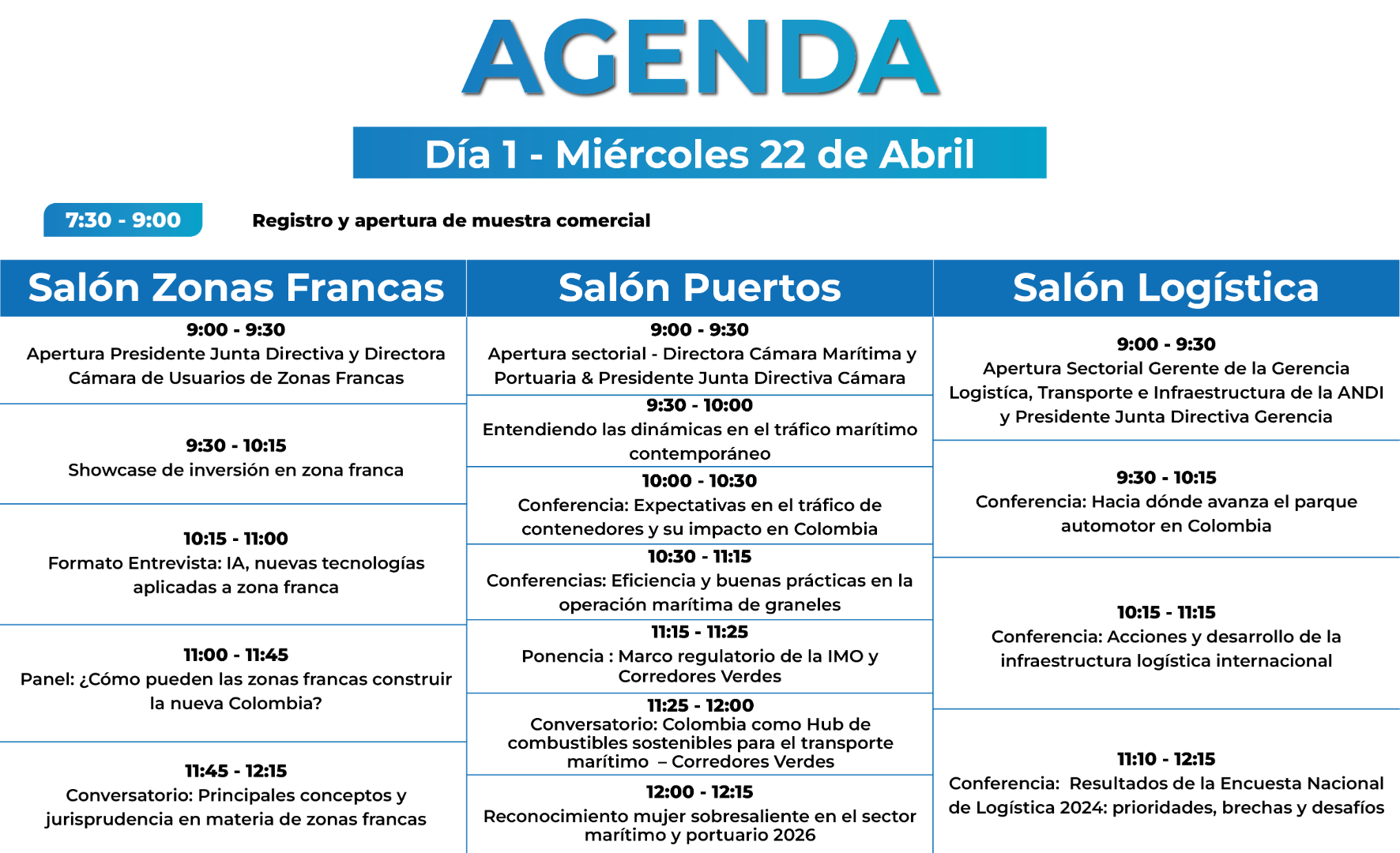 Este Congreso es una oportunidad clave para establecer contactos, hacer negocios, intercambiar conocimiento y construir alianzas estratégicas, contribuyendo a un sistema logístico, de zonas francas y portuario más competitivo, sostenible y eficiente.