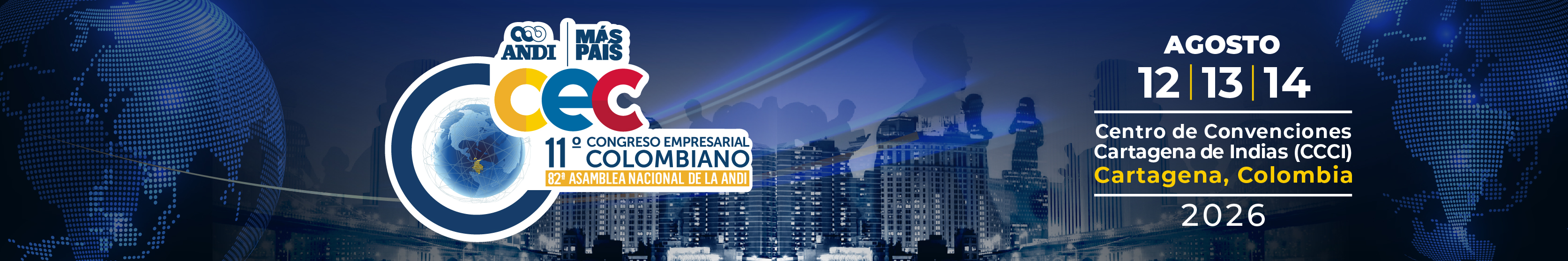 Del 12 al 14 de agosto de 2026, la ANDI realizará el 11º Congreso Empresarial Colombiano (CEC) y la 82ª Asamblea General en el Centro de Convenciones de Cartagena de Indias.-