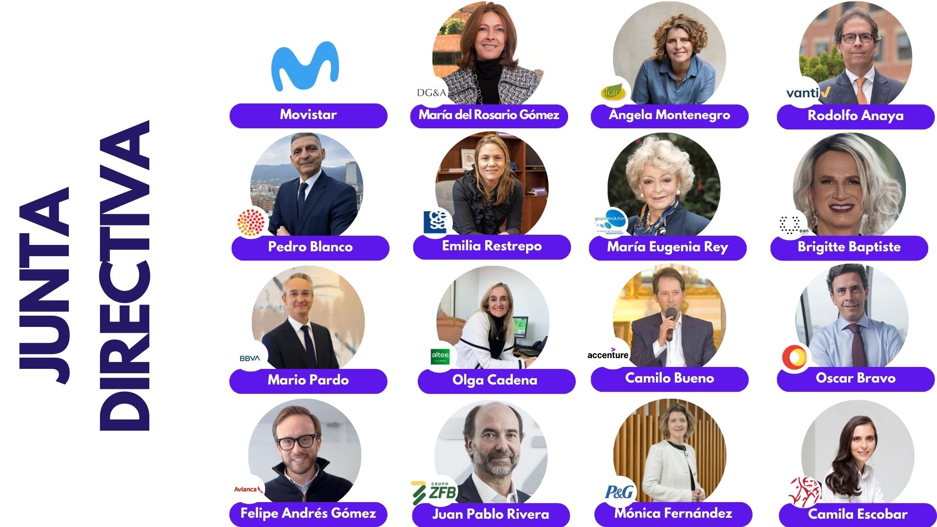 La Junta Directiva está conformada por dieciséis miembros que, a través de este escenario directivo y estratégico, representan las empresas afiliadas a la Seccional Bogotá- Cundinamarca-Boyacá. La Junta Directiva se reúne periódicamente con el fin de hacer seguimiento al Plan Estratégico de la Seccional y construir iniciativas que beneficien a todas las empresas afiliadas, promoviendo la competitividad regional.