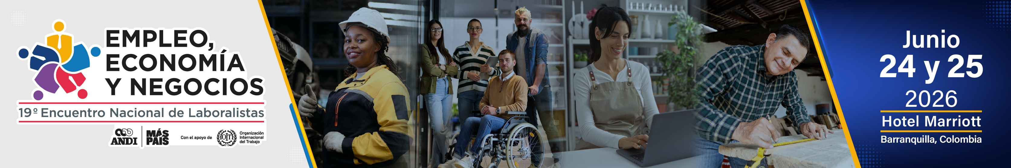 La Asociación Nacional de Empresarios de Colombia – ANDI se complace en invitarlo a uno de los escenarios más relevantes del país para el análisis y la reflexión en materia laboral: “Empleo, Economía y Negocios – 19° Encuentro Nacional de Laboralistas”, que se llevará a cabo de manera presencial los días 24 y 25 de junio de 2026 en el Hotel Marriott de la ciudad de Barranquilla.