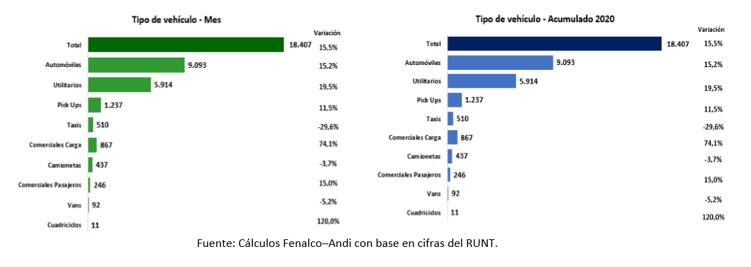 Bogotá, 3 de febrero de 2019. El total de matrículas del sector automotor en el mes de enero de 2020 fue de 18.407 vehículos nuevos, que representaron un crecimiento del 15,5% respecto al mismo mes del año 2019 cuando se matricularon 15.941 unidades. En el mes de enero, se destacaron los segmentos de “cuadriciclos”, “Comerciales de carga” y “Utilitarios”, al registrar variaciones del orden de 120%, 74% y 19,5% respectivamente.