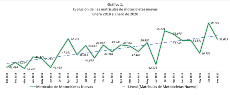 En enero de 2020 se matricularon 52.055 motocicletas.