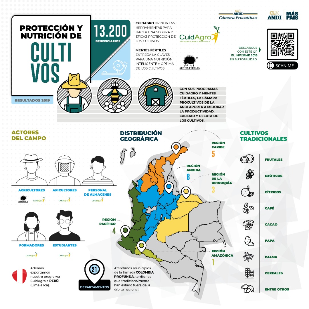 María Helena Latorre, directora de Procultivos ANDI, señaló "durante el año pasado extendimos el alcance de nuestros programas, llegando incluso a lo que se conoce como la ‘Colombia Profunda’, para atender a los productores del campo en zonas que tradicionalmente han estado olvidadas de las órbitas de comercio tradicional”. “Ver cosechas más productivas y apetecidas en el comercio gracias a los cambios en los productores es nuestra satisfacción”.