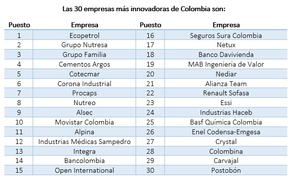 Se trata de la principal herramienta para tomarle el pulso a la innovación empresarial en el país con la participación de 242 empresas de 12 departamentos, cuyos ingresos constituyen el 29% del PIB nacional. El ranking busca visibilizar a las empresas más innovadoras del país y motivar a las que no han incorporado prácticas en esta materia a que lo hagan. En esta edición casi todas las compañías que decidieron medirse, aseguraron haber realizado alguna innovación para ayudar al país en la atención de la emergencia por COVID-19. Fue así como empresas de sectores distintos a la salud desarrollaron productos, servicios y distintas plataformas para ayudar a las poblaciones y actividades más golpeadas por la crisis.